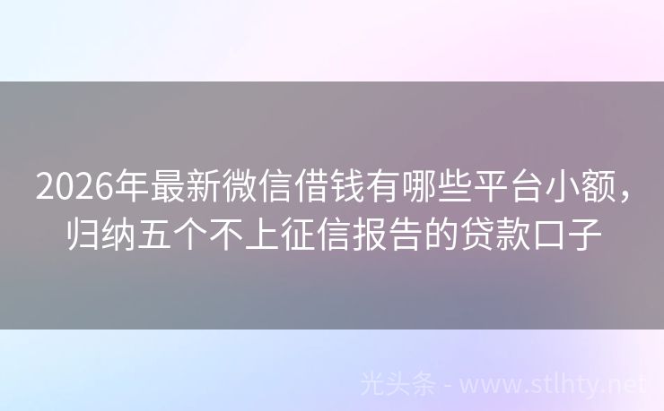 2026年最新微信借钱有哪些平台小额,归纳五个不上征信报告的贷款口子