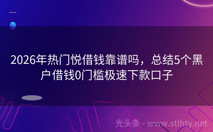 2026年热门悦借钱靠谱吗,总结5个黑户借钱0门槛极速下款口子