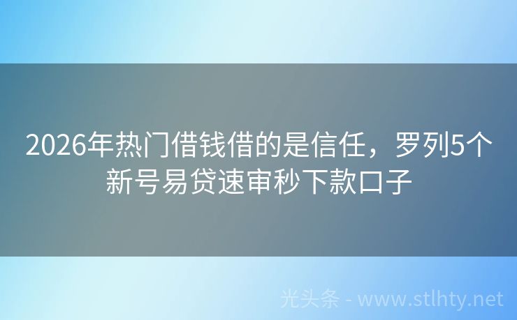 2026年热门借钱借的是信任,罗列5个新号易贷速审秒下款口子