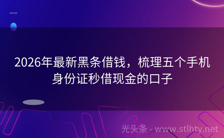 2026年最新黑条借钱,梳理五个手机身份证秒借现金的口子