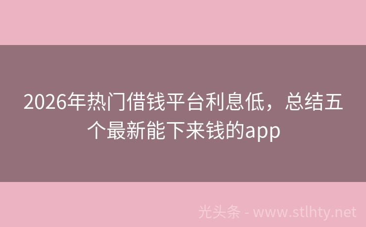 2026年热门借钱平台利息低,总结五个最新能下来钱的app