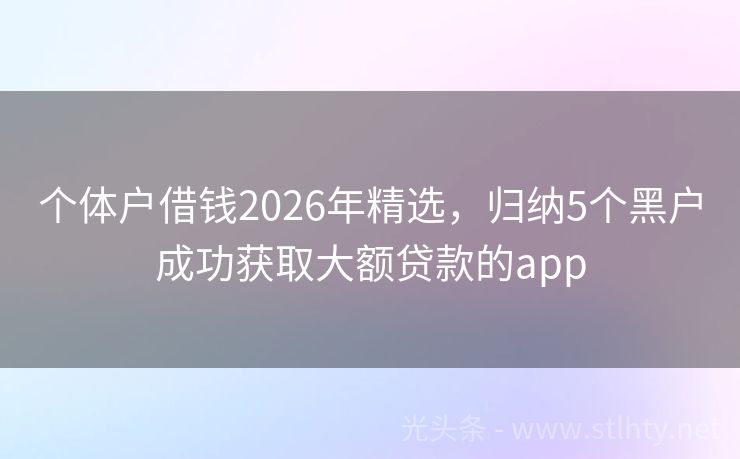 个体户借钱2026年精选,归纳5个黑户成功获取大额贷款的app