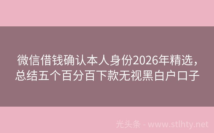 微信借钱确认本人身份2026年精选,总结五个百分百下款无视黑白户口子