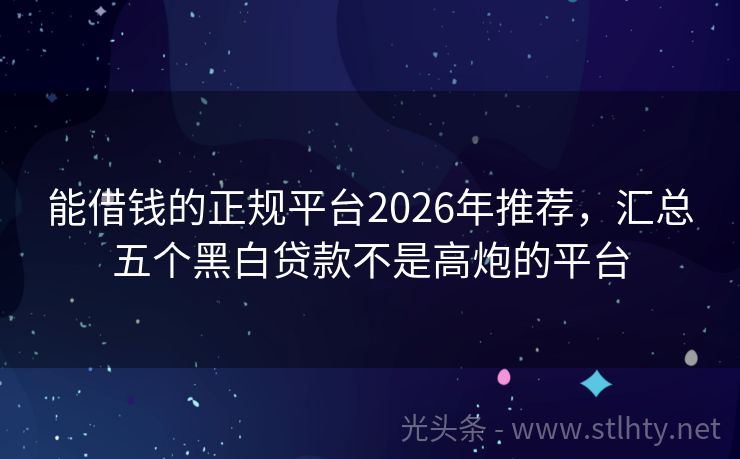 能借钱的正规平台2026年推荐,汇总五个黑白贷款不是高炮的平台