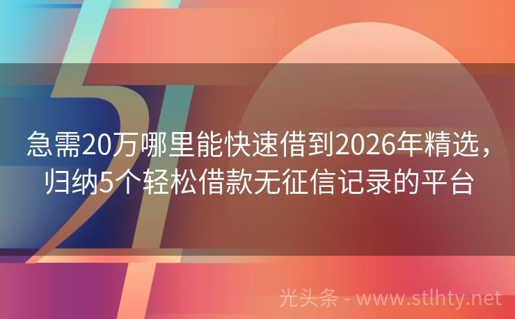急需20万哪里能快速借到2026年精选,归纳5个轻松借款无征信记录的平台