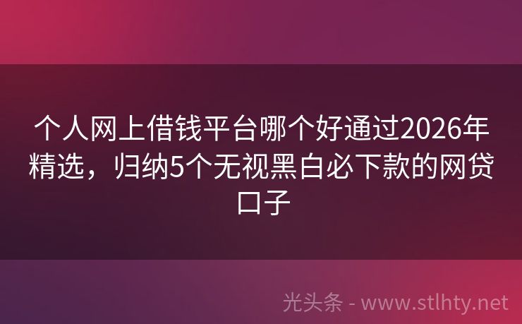 个人网上借钱平台哪个好通过2026年精选,归纳5个无视黑白必下款的网贷口子