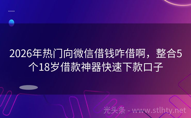 2026年热门向微信借钱咋借啊,整合5个18岁借款神器快速下款口子