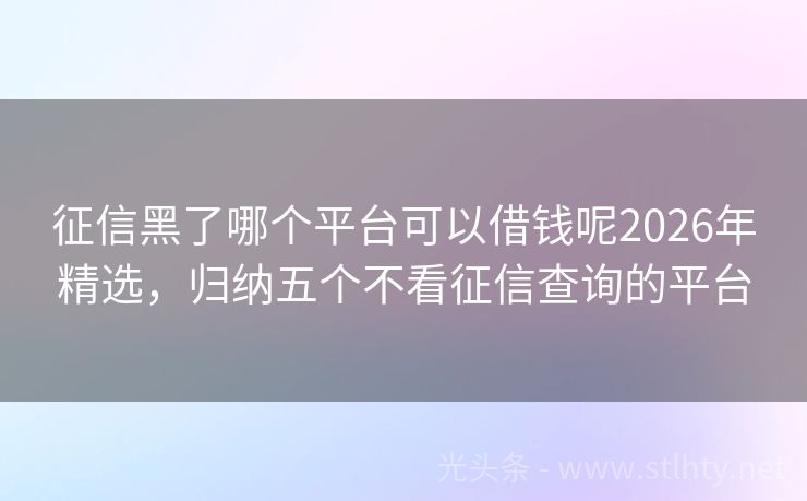 征信黑了哪个平台可以借钱呢2026年精选,归纳五个不看征信查询的平台