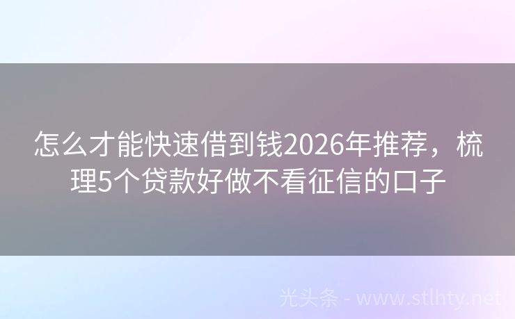 怎么才能快速借到钱2026年推荐,梳理5个贷款好做不看征信的口子