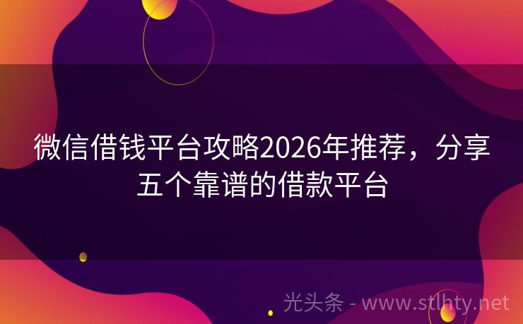 微信借钱平台攻略2026年推荐,分享五个靠谱的借款平台