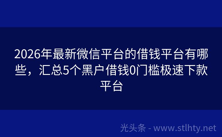 2026年最新微信平台的借钱平台有哪些,汇总5个黑户借钱0门槛极速下款平台