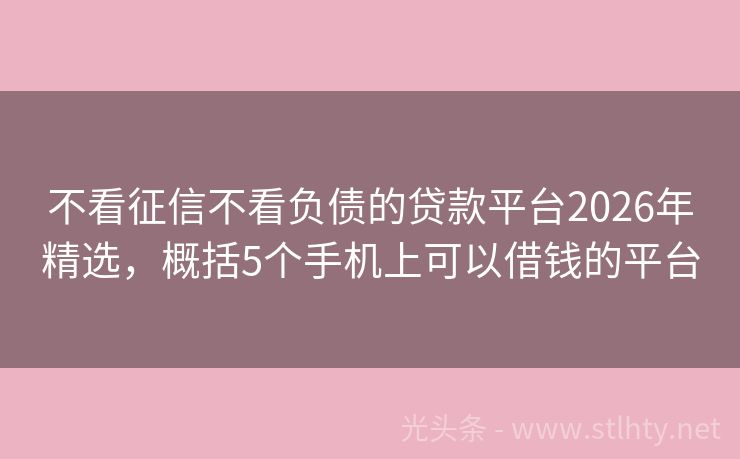 不看征信不看负债的贷款平台2026年精选,概括5个手机上可以借钱的平台
