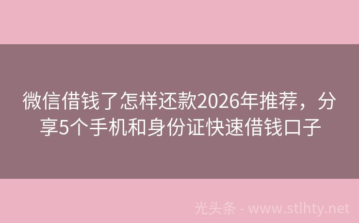 微信借钱了怎样还款2026年推荐,分享5个手机和身份证快速借钱口子