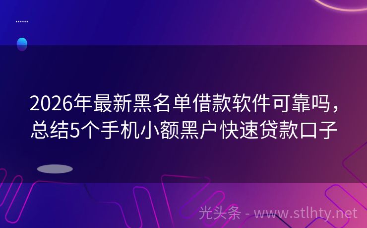 2026年最新黑名单借款软件可靠吗,总结5个手机小额黑户快速贷款口子