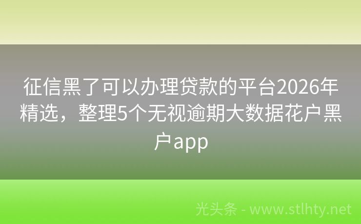 征信黑了可以办理贷款的平台2026年精选,整理5个无视逾期大数据花户黑户app