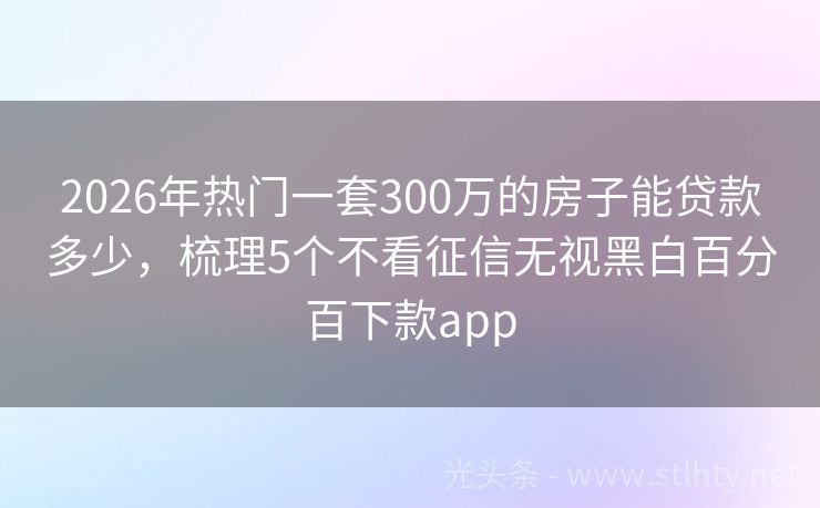 2026年热门一套300万的房子能贷款多少,梳理5个不看征信无视黑白百分百下款app