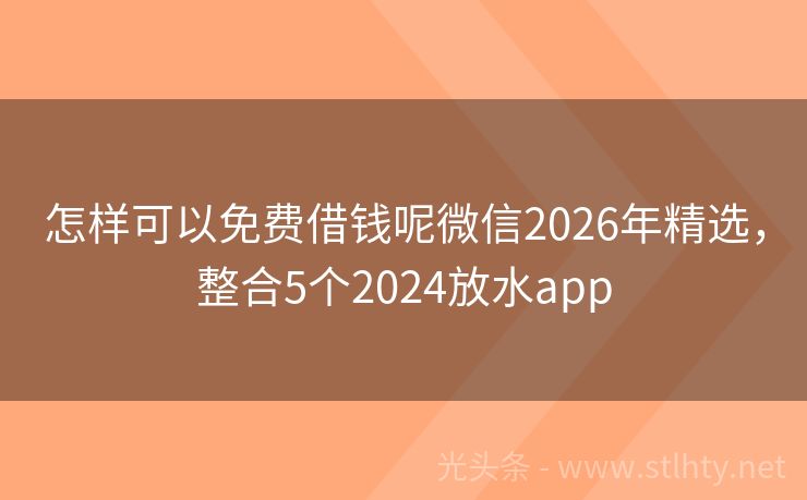 怎样可以免费借钱呢微信2026年精选,整合5个2024放水app