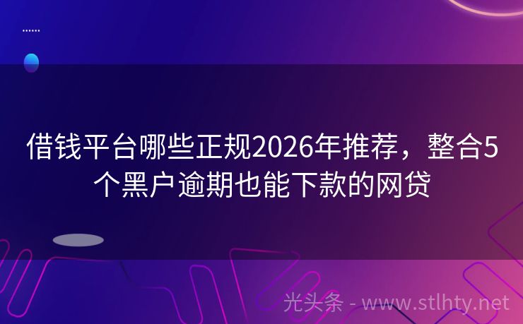 借钱平台哪些正规2026年推荐,整合5个黑户逾期也能下款的网贷