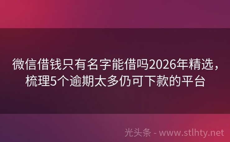 微信借钱只有名字能借吗2026年精选,梳理5个逾期太多仍可下款的平台