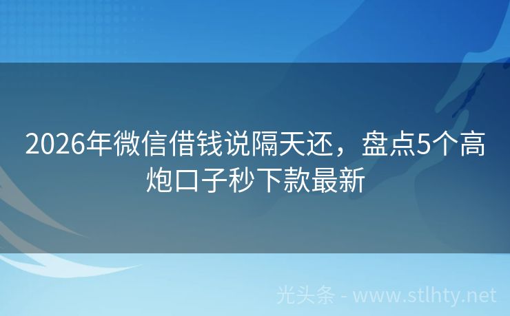 2026年微信借钱说隔天还,盘点5个高炮口子秒下款最新