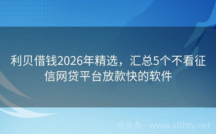 利贝借钱2026年精选,汇总5个不看征信网贷平台放款快的软件