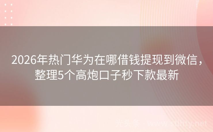 2026年热门华为在哪借钱提现到微信,整理5个高炮口子秒下款最新