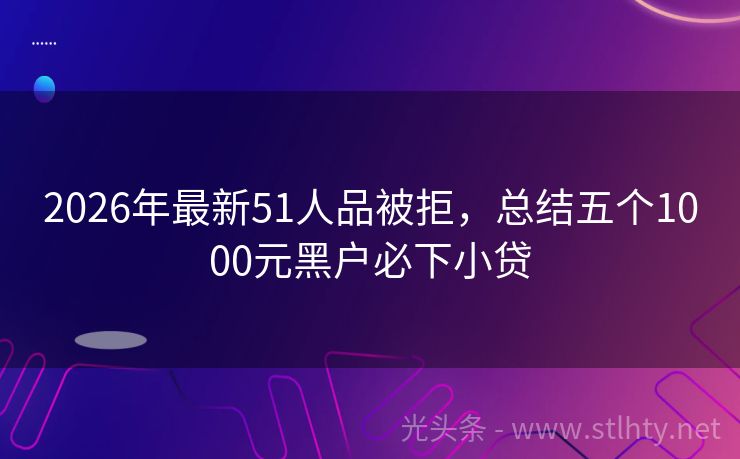 2026年最新51人品被拒,总结五个1000元黑户必下小贷