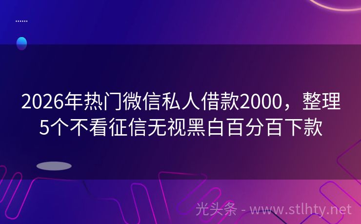 2026年热门微信私人借款2000,整理5个不看征信无视黑白百分百下款