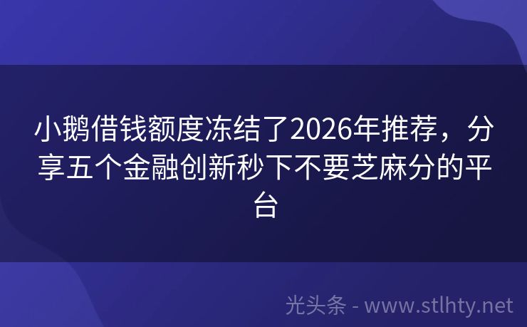 小鹅借钱额度冻结了2026年推荐,分享五个金融创新秒下不要芝麻分的平台