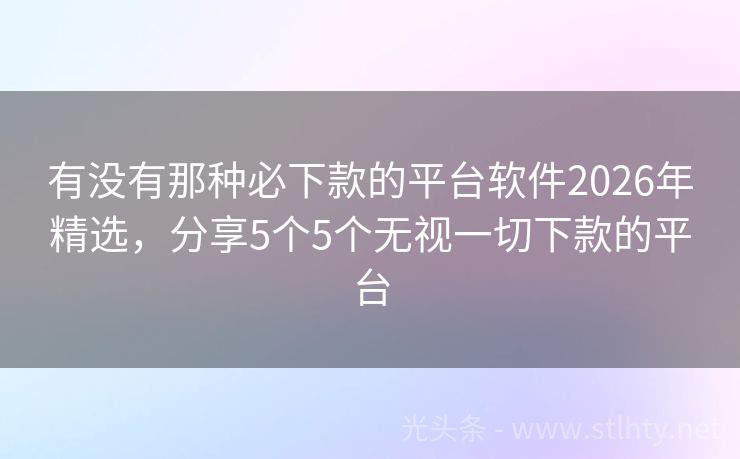有没有那种必下款的平台软件2026年精选,分享5个5个无视一切下款的平台