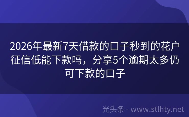 2026年最新7天借款的口子秒到的花户征信低能下款吗,分享5个逾期太多仍可下款的口子