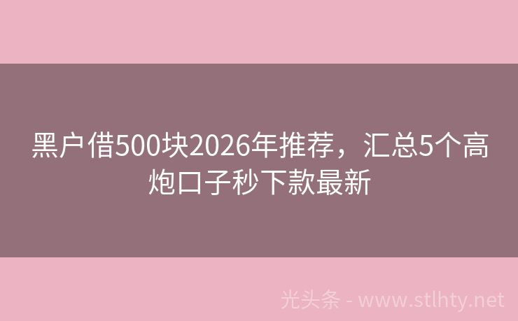 黑户借500块2026年推荐,汇总5个高炮口子秒下款最新