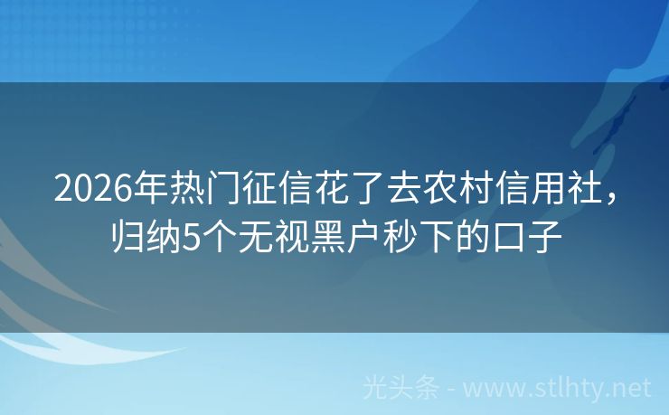 2026年热门征信花了去农村信用社,归纳5个无视黑户秒下的口子