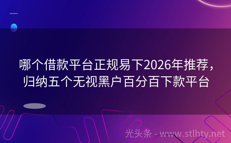 哪个借款平台正规易下2026年推荐,归纳五个无视黑户百分百下款平台