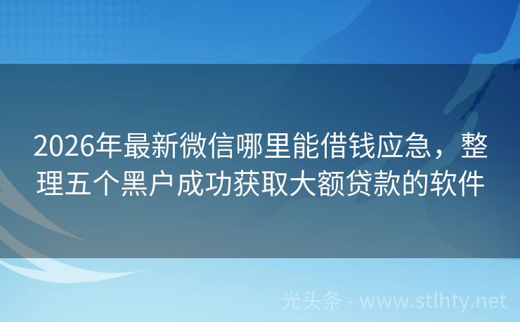 2026年最新微信哪里能借钱应急,整理五个黑户成功获取大额贷款的软件