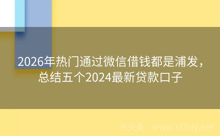 2026年热门通过微信借钱都是浦发,总结五个2024最新贷款口子