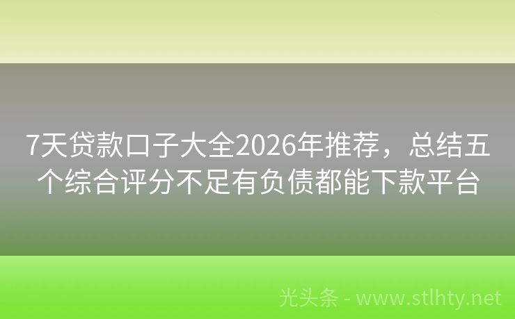 7天贷款口子大全2026年推荐,总结五个综合评分不足有负债都能下款平台
