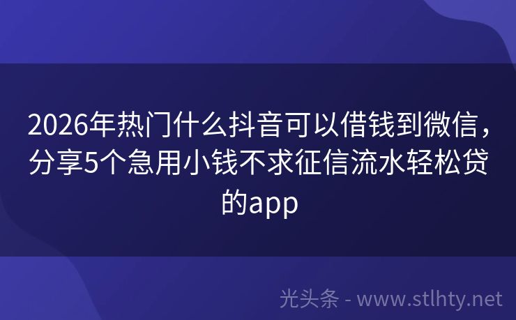 2026年热门什么抖音可以借钱到微信,分享5个急用小钱不求征信流水轻松贷的app