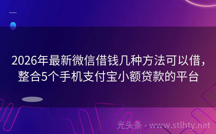 2026年最新微信借钱几种方法可以借,整合5个手机支付宝小额贷款的平台