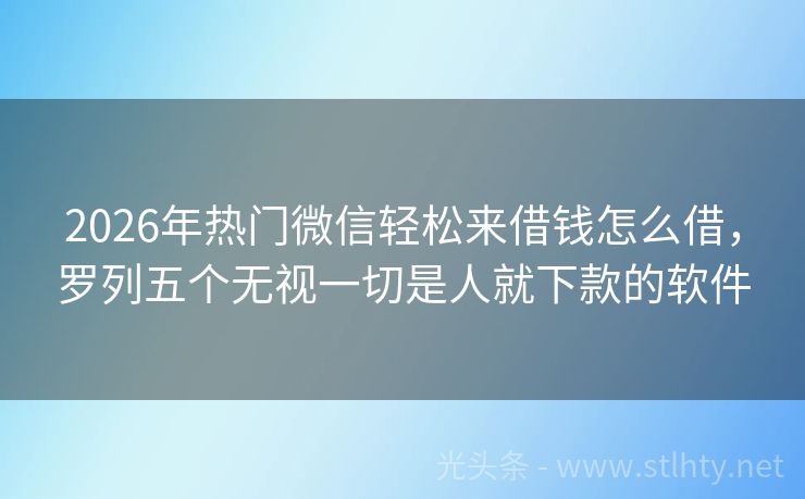 2026年热门微信轻松来借钱怎么借,罗列五个无视一切是人就下款的软件