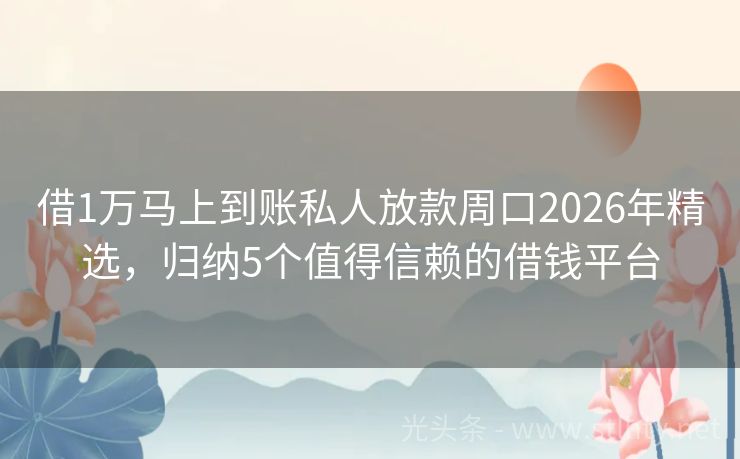借1万马上到账私人放款周口2026年精选,归纳5个值得信赖的借钱平台