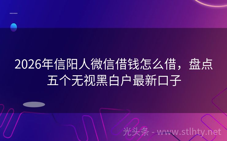 2026年信阳人微信借钱怎么借,盘点五个无视黑白户最新口子