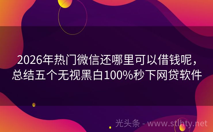2026年热门微信还哪里可以借钱呢,总结五个无视黑白100%秒下网贷软件