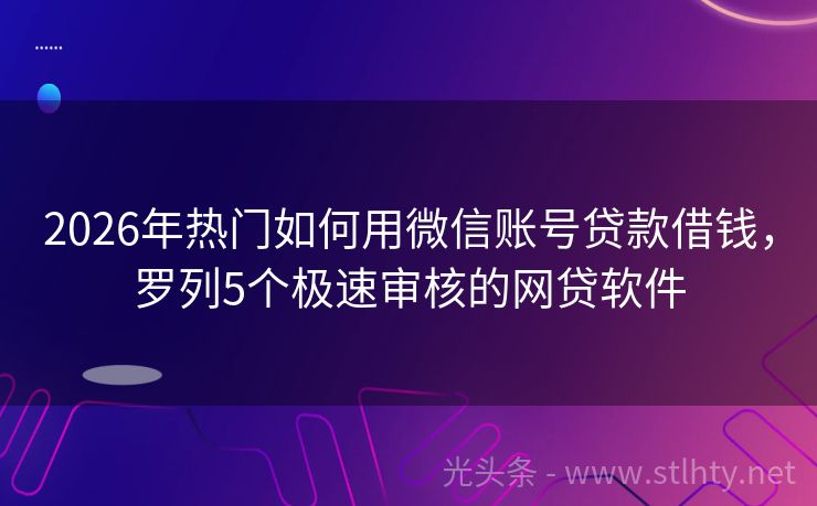 2026年热门如何用微信账号贷款借钱,罗列5个极速审核的网贷软件
