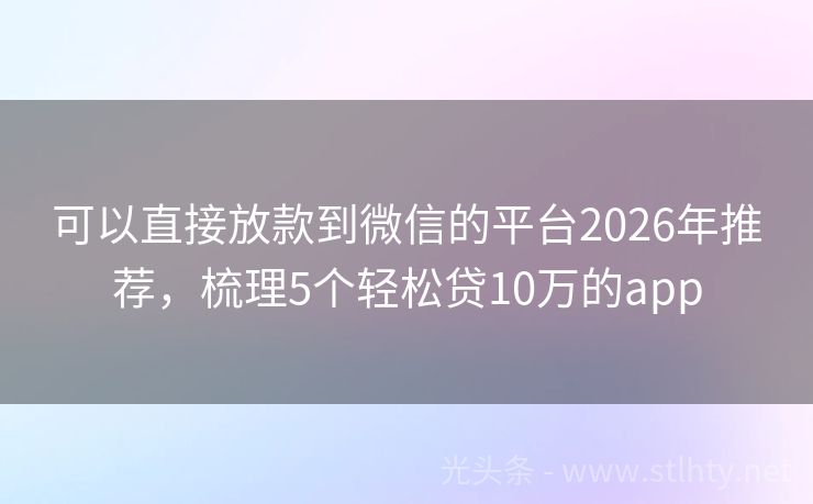 可以直接放款到微信的平台2026年推荐,梳理5个轻松贷10万的app