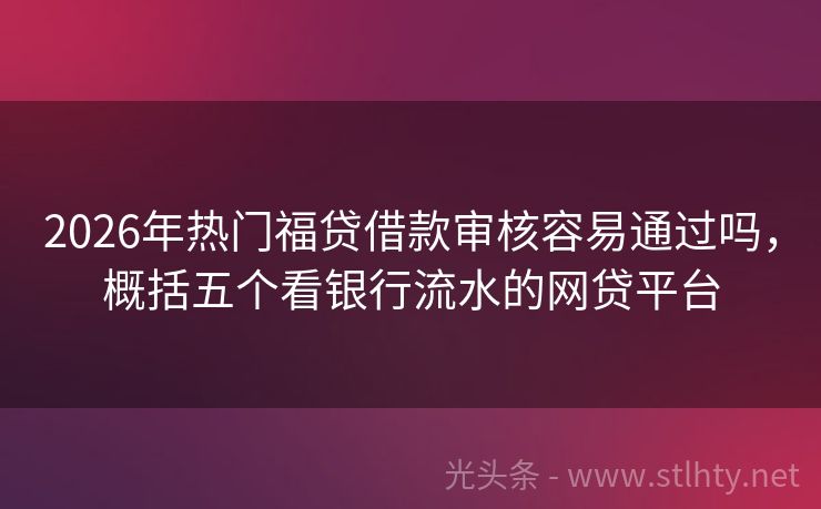 2026年热门福贷借款审核容易通过吗,概括五个看银行流水的网贷平台