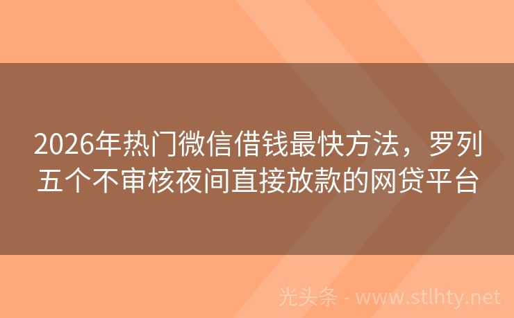 2026年热门微信借钱最快方法,罗列五个不审核夜间直接放款的网贷平台