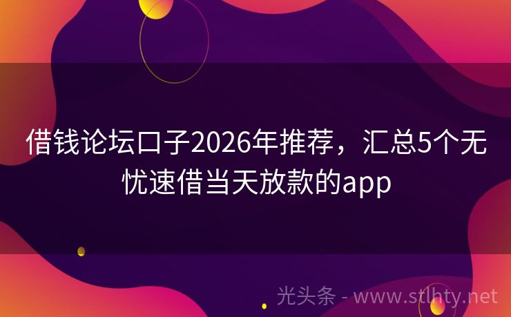 借钱论坛口子2026年推荐,汇总5个无忧速借当天放款的app