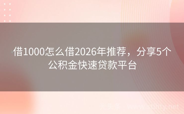 借1000怎么借2026年推荐,分享5个公积金快速贷款平台
