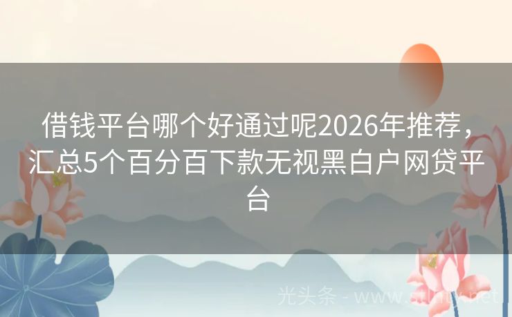 借钱平台哪个好通过呢2026年推荐,汇总5个百分百下款无视黑白户网贷平台